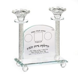 זוג פמוט – קריסטל שושנה סטנד לברכון/לעילוי נשמות 20 ס”מ