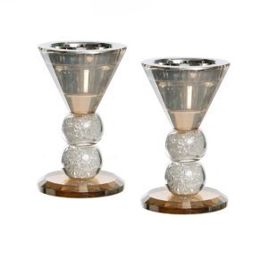 זוג פמוט – קריסטל עגולים אבנים ענבר כסף גובה 12 ס”מ