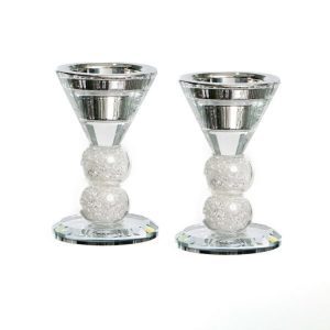 זוג פמוט – קריסטל עגולים אבנים כסף גובה 12 ס”מ