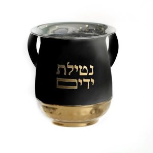 נטלה נירוסטה – אמייל שחור ‘נטילת ידיים’ זהב ועיטור רקוע